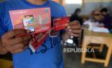 Warga menunjukan buku tabungan dan kartu debit usai mengambil Bantuan Sosial Tunai (BST) di SMPN 3, Jakarta, Selasa (26/1). Pencairan bansos Bantuan Sosial Tunai (BST) di Provinsi DKI Jakarta dilakukan secara bertahap mulai Januari-April 2021. Pencairan bansos di Jakarta yang dilakukan Bank DKI bersama Dinsos DKI Jakarta dibatasi hanya untuk 500 orang penerima per titik per hari demi menghindari penyebaran pandemi COVID-19.Prayogi/Republika (FOTO : Prayogi/Republika.)