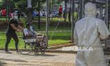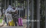 Petugas mendampingi tenaga kesehatan yang positif Covid-19 di RSDC Wisma Atlet, Jakarta, Selasa (26/1). (FOTO : Republika/Putra M. Akbar)