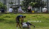 Pasien positif Covid-19 yang berstatus OTG (Orang Tanpa Gejala) saat olahraga pagi di RSDC Wisma Atlet, Jakarta, Selasa (26/1). (FOTO : Republika/Putra M. Akbar)
