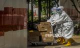 Tenaga kesehatan saat membawa obat-obatan untuk pasien di RSDC Wisma Atlet, Jakarta, Selasa (26/1). (FOTO : Republika/Putra M. Akbar)