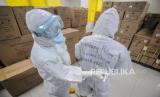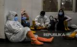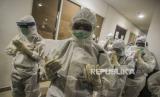 Tenaga kesehatan bersiap melakukan perawatan pasien Covid-19 di RSDC Wisma Atlet, Jakarta, Selasa (26/1). (FOTO : Republika/Putra M. Akbar)