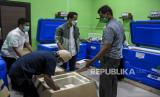 Petugas kesehatan memasukkan vaksin Covid-19 Sinovac ke dalam kotak pendingin saat didistribusikan di Instalasi Farmasi Dinas Kesehatan Kota Bandung, Jalan Supratman, Kota Bandung, Rabu (27/1). Dinas Kesehatan Kota Bandung mendistribusikan 25.040 dosis vaksin Covid-19 Sinovac ke 191 fasilitas kesehatan di Kota Bandung untuk pelaksanaan penyuntikan tahap kedua bagi sumber daya manusia (SDM) di lingkungan kesehatan, kepala daerah serta tokoh publik pada (28/1) mendatang. Foto: Abdan Syakura/Republika (FOTO : ABDAN SYAKURA/REPUBLIKA)