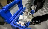 REPUBLIKA.CO.ID, BANDUNG -- Petugas kesehatan membawa kotak pendingin berisi vaksin Covid-19 Sinovac saat didistribusikan di Instalasi Farmasi Dinas Kesehatan Kota Bandung, Jalan Supratman, Kota Bandung, Rabu (27/1).