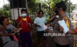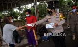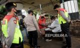 Tim Pemburu Covid-19 Polrestro Jaktim membagikan masekr kepada warga yang berada di Kawasan Terminal Kampung Melayu, Jakarta, Rabu (27/1). Selain membagikan masker, Tim Pemburu Covid-19 Polrestro Jaktim tersebut juga mengadakan rapid test antibodi hal ini sebagai upaya menekan angka penyebaran Covid-19. (FOTO : Prayogi/Republika.)
