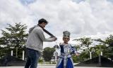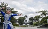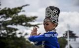 Penari cilik berlatih tari di kawasan Monumen Perjuangan Rakyat Jawa Barat, Kota Bandung, Rabu (27/1). Revitalisasi Kawasan Monumen Perjuangan Rakyat Jawa Barat tersebut ditujukan untuk menunjukkan identitas Jawa Barat melalui monumen dan tugu pandang serta mewujudkan taman kota yang reprsentatif sekaligus upaya untuk mempercantik salah satu sudut ikon Kota Bandung. Foto: Abdan Syakura/Republika (FOTO : ABDAN SYAKURA/REPUBLIKA)