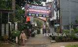 REPUBLIKA.CO.ID, JAKARTA -- Warga berjalan didekat spanduk peringatan Zona Merah di RW 010, Kelurahan Cipinang Melayu, Jakarta, Rabu (27/1).