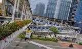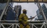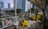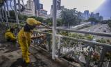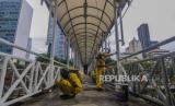 REPUBLIKA.CO.ID, JAKARTA -- Sejumlah Petugas Dinas Bina Marga melihara fasilitas jembatan penyeberangan orang (JPO) Bendungan Hilir di kawasan Sudirman, Jakarta, Rabu (27/1). Pengecatan JPO itu dilakukan untuk merawat dan memelihara keberadaan fasilitas umum tersebut.