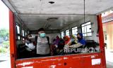 Truk BPBD membawa warga Turgo Barak Pengungsian Purwobinangun, Sleman, Yogyakarta, Rabu (27/1). (FOTO : Wihdan Hidayat / Republika)