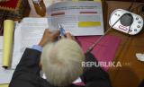 Anggota Komisi III Ichsan Soelistio menjabarkan temuan indikasi plagiat pada makalah Calon Hakim Agung Tata Usaha Negara (TUN) khusus pajak Triyono Martanto dalam uji kelayakan di kompleks Parlemen, Jakarta, Rabu (27/1). (FOTO : ANTARA/Aditya Pradana Putra)