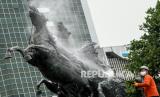 REPUBLIKA.CO.ID, JAKARTA -- Pekerja membersihkan patung Asta Brata (Arjuna Wijaya) di jalan Medan Merdeka Barat, Jakarta, Rabu (27/1/). Perawatan dan pembersihan itu dilakukan untuk menjaga kondisi patung yang dibuat oleh seniman Bali Nyoman Nuarta pada tahun 1987.