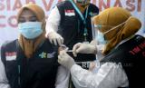 Sejumlah para tenaga kesehatan menjalani suntik vaksinasi Covid-19 tahap kedua yang mulai dilaksanakan pada pada hari ini Kamis (28/1).