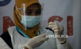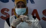 Petugas menyiapkan vaksin COVID-19 yang akan diberikan pada tenaga kesehatan di Puskesmas Tanah Sareal, Bogor, Jawa Barat, Kamis (28/1). Sejumlah para tenaga kesehatan menjalani suntik vaksinasi Covid-19 tahap kedua yang mulai dilaksanakan pada pada hari ini Kamis (28/1).Prayogi/Republika (FOTO : Prayogi/Republika.)