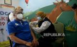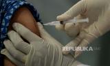Petugas menyuntikan vaksin COVID-19 ke seorang tenaga kesehatan di Puskesmas Tanah Sareal, Bogor, Jawa Barat, Kamis (28/1).Sejumlah para tenaga kesehatan menjalani suntik vaksinasi Covid-19 tahap kedua yang mulai dilaksanakan pada pada hari ini Kamis (28/1).Prayogi/Republika (FOTO : Prayogi/Republika.)