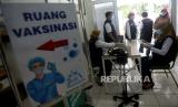 Petugas menyiapkan vaksin COVID-19 yang akan diberikan pada tenaga kesehatan di Puskesmas Tanah Sareal, Bogor, Jawa Barat, Kamis (28/1). Sejumlah para tenaga kesehatan menjalani suntik vaksinasi Covid-19 tahap kedua yang mulai dilaksanakan pada pada hari ini Kamis (28/1). (FOTO : Prayogi/Republika.)