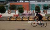 Warga dengan menggunakan sepeda meninggalkan kawasan Stadion Pakansari, Kabupaten Bogor, Jawa Barat, Kamis (28/1). Pemerintah Kabupaten Bogor menutup sementara kawasan Stadion Pakansari dari segala aktivitas selama Pemberlakuan Pembatasan Kegiatan Masyarakat (PPKM) hal untuk menghindari kerumunan yang berpotensi menyebarkan Covid-19. (FOTO : Prayogi/Republika.)