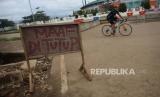 Warga dengan menggunakan sepeda meninggalkan kawasan Stadion Pakansari, Kabupaten Bogor, Jawa Barat, Kamis (28/1). Pemerintah Kabupaten Bogor menutup sementara kawasan Stadion Pakansari dari segala aktivitas selama Pemberlakuan Pembatasan Kegiatan Masyarakat (PPKM) hal untuk menghindari kerumunan yang berpotensi menyebarkan Covid-19.Prayogi/Republika (FOTO : Prayogi/Republika.)