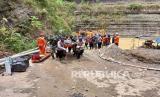 Tim SAR gabungan melakukan evakuasi korban di lokasi tanah longsor tambang Manualan, di Kecam atan Mentewe, Kabupaten Tanah Bumbu, Kalimantan Selatan, Kamis (28/1). (FOTO : Antara/Humas Basarnas Banjarmasin)
