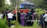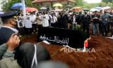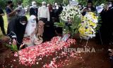 REPUBLIKA.CO.ID, BOGOR -- Sejumlah keluarga dan kerabat menaburkan bunga ke atas makam Pilot Sriwijaya Air SJ 182 Kapten Afwan usai dimakamkan di TPU Pondok Rajeg, Kabupaten Bogor, Jawa Barat, Sabtu (30/1).