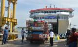 Petugas mengatur truk bermuatan sembako menaiki KMP Aceh Hebat-2 di Pelabuhan Ulee Lheue, Banda Aceh, Aceh, Sabtu (30/1/2021). Pelayaran perdana KMP Aceh Hebat-2, salah satu dari tiga kapal baru yang melayani rute penyeberangan Pulau Sabang, Pulau Simeulue dan Pulau Banyak itu untuk mendukung konektivitas perekonomian dan pariwisata. (FOTO : Antara/Ampelsa)