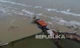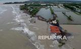 REPUBLIKA.CO.ID, PEKALONGAN -- Foto udara rumah warga terdampak abrasi laut di Simonet, Wonokerto, Kabupaten Pekalongan, Jawa Tengah, Minggu (31/1). Menurut warga setempat, gelombang air laut bergerak ke daratan dan menghantam rumah warga di lokasi itu dapat mencapai ketinggian hingga tiga meter dan menyebabkan air masuk dan merusak sejumlah rumah warga.