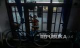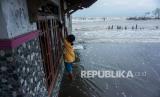 Warga menjemur pakaian di samping rumahnya yang terimbas abrasi di Simonet, Wonokerto, Kabupaten Pekalongan, Jawa Tengah, Ahad (31/1). (FOTO : Antara/Harviyan Perdana Putra)