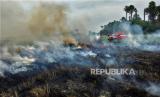 REPUBLIKA.CO.ID, BOMBANA -- Api membakar lahan di Taman Nasional Rawa Aopa Watumohai, Kabupaten Bombana, Sulawesi Tenggara, Ahad (31/1). Kawasan ekosistem savana Taman Nasional Rawa Aopa Watumohai terbakar sekitar 17 Hektare sejak Senin (25/1/2021), sementara pada Minggu (31/1/2021) pihak Balai Taman Nasional Rawa Aopa Watumohai (TNRAW) baru memperbolehkan pihak Manggala Agni melakukan pemadaman Karhutla.