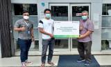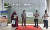 Kepala Cabang PT Sharia Multifinance Astra cabang Bekasi Firman Abadi (kanan) dan Syariah Account Officer (SYAO) Sony Prastowo Ramadhan (kiri) berfoto bersama perwakilan calon konsumen Muksoni (tengah) saat acara peresmian pembukaan kantor cabang PT Sharia Multifinance Astra di Bekasi Barat. (FOTO : Astra)