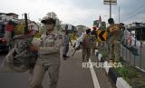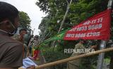 Petugas menggelar razia reklame ilegal untuk menegakkan peraturan daerah serta menjaga kebersihan kota di masa pembatasan kegiatan masyarakat.