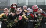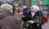 REPUBLIKA.CO.ID, JAKARTA -- Sejumlah wanita Muslim yang tinggal di Ukraina, memegang bunga saat memperingati Hari Hijab Sedunia di Kiev, Ukraina, Senin (1/2).