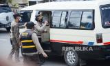 Petugas kopolisian memeriksa penumpang kendaraan angkutan umum saat kegiatan penegakan disiplin penerapan protokol kesehatan pencegahan Covid-19 di kawasan Alun-alun Lembang, Kabupaten Bandung Barat, Selasa (2/2). Petugas gabungan di antaranya dari kepolisian, TNI dan Satpol PP mengingatkan kepada pengguna jalan dan masyarakat agar menerapkan protokol kesehatan dengan baik. Petugas juga membagikan masker kepada warga yang tidak memakai masker. (FOTO : Edi Yusuf/Republika)