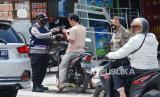 Petugas kopolisian dan TNI memberikan peringatan kepada pengguna jalan yang tidak memakai masker saat kegiatan penegakan disiplin penerapan protokol kesehatan pencegahan Covid-19 di kawasan Alun-alun Lembang, Kabupaten Bandung Barat, Selasa (2/2). Petugas gabungan di antaranya dari kepolisian, TNI dan Satpol PP terus melakukan sosialisai penerapan protokol kesehatan kepada masyarakat untuk menekan penularan wabah Covid-19. (FOTO : Edi Yusuf/Republika)
