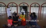Keluarga pasien COVID-19 mengikuti ritual Mekingsang Ring Geni atau Nitip Geni saat proses kremasi di Krematorium Keputih, Surabaya, Jawa Timur, Selasa (2/2/2021). Krematorium milik Pemerintah Kota Surabaya yang berada di kompleks makam Keputih tersebut melayani pembakaran jenazah (kremasi) selama 24 jam pada masa pandemi COVID-19. (FOTO : MOCH ASIM/ANTARA FOTO)