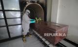 REPUBLIKA.CO.ID, SURABAYA -- Petugas memasukkan peti jenazah pasien COVID-19 untuk dikremasi di Krematorium Keputih, Surabaya, Jawa Timur, Selasa (2/2/2021).