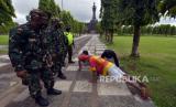 REPUBLIKA.CO.ID, DENPASAR -- Petugas memberikan sanksi sosial kepada warga saat penutupan ruang publik di Lapangan Puputan Margarana Renon, Denpasar, Bali, Selasa (2/2/2021).