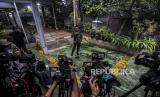 Kepala Kantor Staf Kepresidenan (KSP) Moeldoko memberikan keterangan perihal tudingan kudeta Partai Demokrat, di kediamannya kawasan Menteng, Jakarta, Rabu (3/2). (FOTO : Republika/nawir arsyad akbar)