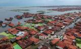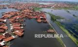 Foto udara rumah warga terdampak banjir di Pekalongan, Jawa Tengah, Kamis (4/2).  (FOTO : Antara/Harviyan Perdana Putra)