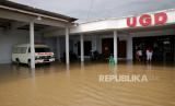 Kondisi Klinik unit gawat darurat (UGD) yang tergenang banjir di Desa Gondangmanis, Kecamatan Bandar Kedungmulyo, Kabupaten Jombang, Jawa Timur, tergenang banjir, Kamis (4/2/2021). Banjir yang disebabkan meluapnya Sungai avur Brawijaya di desa setempat mengakibatkan kemacetan sepanjang satu kilometer dan menggenangi puluhan rumah. (FOTO : SYAIFUL ARIF/ANTARA )