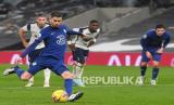 Pemain Chelsea Jorginho mencetak keunggulan 1-0 dari titik penalti pada pertandingan sepak bola Liga Utama Inggris antara Tottenham Hotspur dan Chelsea FC di London, Inggris, Jumat (5/2) dini hari WIB. (FOTO : EPA-EFE / Clive Rose)