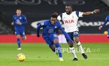 Pemain Tottenham Tanguy Ndombele (kanan) menempel ketat pemain Chelsea Callum Hudson-Odoi pada pertandingan sepak bola Liga Utama Inggris antara Tottenham Hotspur dan Chelsea FC di London, Inggris, Jumat (5/2) dini hari WIB. (FOTO : EPA-EFE / Neil Hall)