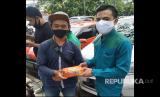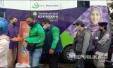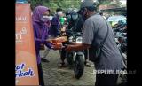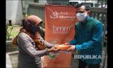 REPUBLIKA.CO.ID, BANDUNG -- Staf Bank Muamalat Cabang Bandung Buah Batu membagikan makanan dan masker kepada warga di sekitar Masjid Istiqamah, Bandung, Jumat (5/2).