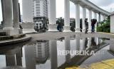 Anggota Satpol PP Kota Bogor melakukan patroli di kawasan pedestrian Kebun Raya Bogor, Jawa Barat, Sabtu (6/2/2021). Pemerintah Kota Bogor menutup jalur pedestrian lingkar Kebun Raya Bogor dan Istana Kepresidenan Bogor atau jalur SSA (Sistem Satu Arah) pada setiap akhir pekan untuk membatasi pergerakan warga saat Pemberlakuan Pembatasan Kegiatan Masyarakat (PPKM) guna menekan tingginya angka kasus COVID-19 di Kota Bogor. (FOTO : Antara/Arif Firmansyah)