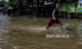 Luapan sungai Ciliwung menyebabkan banjir dengan ketinggian mencapai 20 cm..