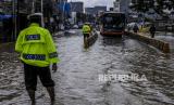 Banjir yang menggenangi badan jalan mencapai 20 cm tersebut diakibatkan luapan sungai Ciliwung yang dipicu tingginya curah hujan sejak dini hari.