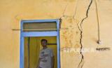 Warga menunjukkan kondisi rumah yang rusak akibat pergerakan tanah di Kampung Munjul, Kecamatan Cineam, Kabupaten Tasikmalaya, Jawa Barat, Senin (8/2/2021). Sebanyak 84 Kepala Keluarga (KK) terdapat 84 rumah warga retak akibat pergerakan tanah di Kepunduhan Munjul dan Kalangsari. (FOTO : ANTARA/Adeng Bustomi)