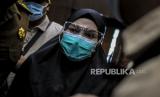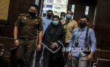 Terdakwa kasus penerimaan suap dari Djoko Tjandra terkait pengurusan fatwa Mahkamah Agung (MA), Pinangki Sirna Malasari bersiap menjalani sidang putusan di Pengadilan Tipikor, Jakarta, Senin (8/2). Pinangki (FOTO : Republika/Putra M. Akbar)