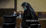 Terdakwa kasus penerimaan suap dari Djoko Tjandra terkait pengurusan fatwa Mahkamah Agung (MA), Pinangki Sirna Malasari saat menjalani sidang putusan di Pengadilan Tipikor, Jakarta, Senin (8/2). (FOTO : Republika/Putra M. Akbar)
