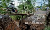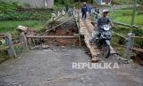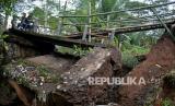 REPUBLIKA.CO.ID, GARUT -- Jembatan yang menghubungkan Desa Pancasura dan Desa Sukawangi di Singajaya, Kabupaten Garut, Jawa Barat, ambruk sejak Jumat (5/2) lalu. Jembatan darurat berbahan bambu pun didirikan sebagai jembatan sementara untuk aktivitas warga kedua desa.