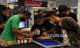 Peserta mempraktikkan teknik sablon saat pelatihan singkat pada acara Soloraya Sablon Fest 2021 di Palur Plaza, Karanganyar, Jawa Tengah, Senin (8/2/2021). Festival sablon tersebut diisi dengan pelatihan singkat sablon, peragaan busana, dan sosialisasi kewirausahaan dari anggota komunitas pengusaha sablon di Soloraya. (FOTO : ANTARA/Maulana Surya)