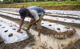 Seorang petani mengganti anakan tanaman tomat yang baru berusia sepekan dan mati di Desa Porame, Kabupaten Sigi, Sulawesi Tengah, Senin (8/2/2021). Curah hujan yang relatif cukup tinggi selama sepekan terakhir membuat petani merugi karena tanaman pertanian seperti sayuran dan palawija banyak yang mati. (FOTO : ANTARA/Basri Marzuki)
