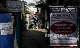 Warga berjalan di dekat spanduk imbauan larangan masuk saat penerapan Pemberlakuan Pembatasan Kegiatan Masyarakat (PPKM) Skala Mikro di Gang Karya Laksana, Tamansari, Kota Bandung, Selasa (9/2). Pemerintah Kota Bandung memastikan Pemberlakuan Pembatasan Kegiatan Masyarakat (PPKM) akan dilanjutkan sesuai arahan pemerintah pusat yang melanjutkan PPKM Skala Mikro hingga 22 Februari guna mencegah penyebaran Covid-19 di tingkat kelurahan. Foto: Abdan Syakura/Republika (FOTO : ABDAN SYAKURA/REPUBLIKA)